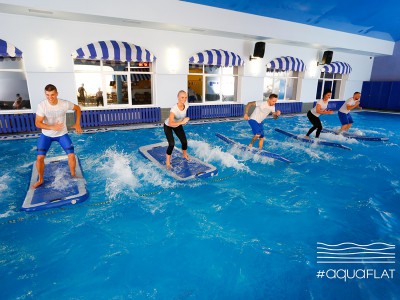 AQUAFLAT — бұл фитнес шекарасын кеңейтетін және суда түрлі бағыттарда жаттығулар жасауға мүмкіндік беретін революциялық өнер табыс. Aquaflat үрмелі сал мен жаттығулардың арнайы кешенін білдіреді. Мұндай жабдықта тіпті барлық жастағы, дене шынықтырудың әр түрлі деңгейіндегі және әр түрлі денелі (сал 140 килограммға дейін көтереді) адамдар жаттығу жасай алады. Жаттығудың бұл түрінің қарсы көрсеткіштері жоқ.